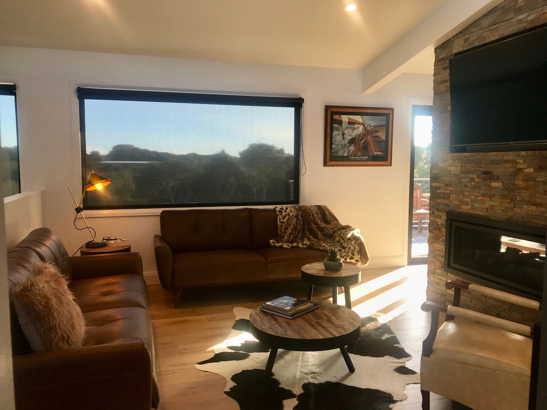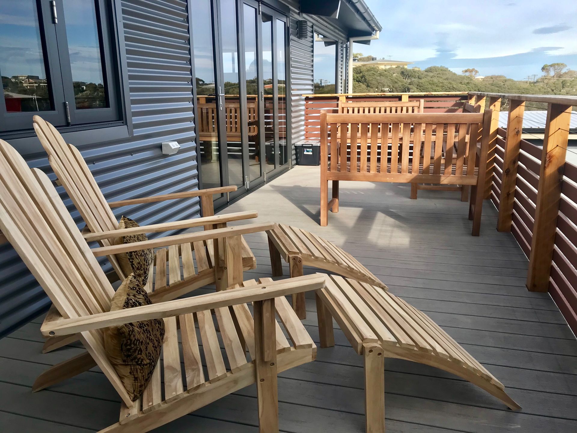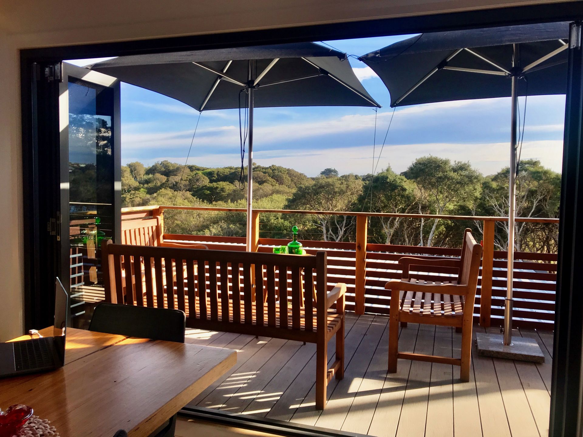 There are views both over the Moonah trees and amongst them from just about every room, and the sounds of both the Ocean and the Bay can be heard from the deck.