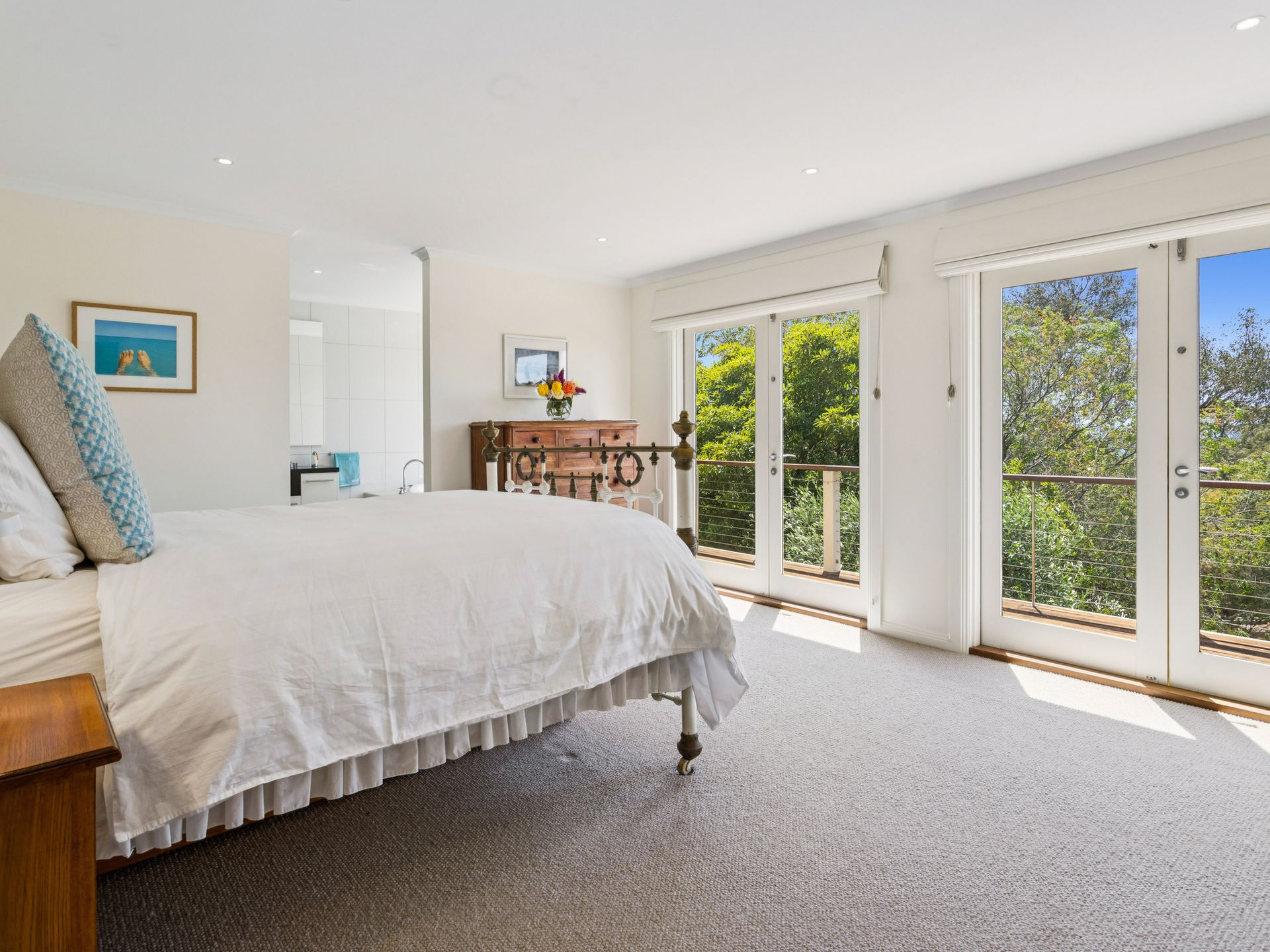 Master Bedroom - Queen Bed with split system, walk in robe and balcony with bay views