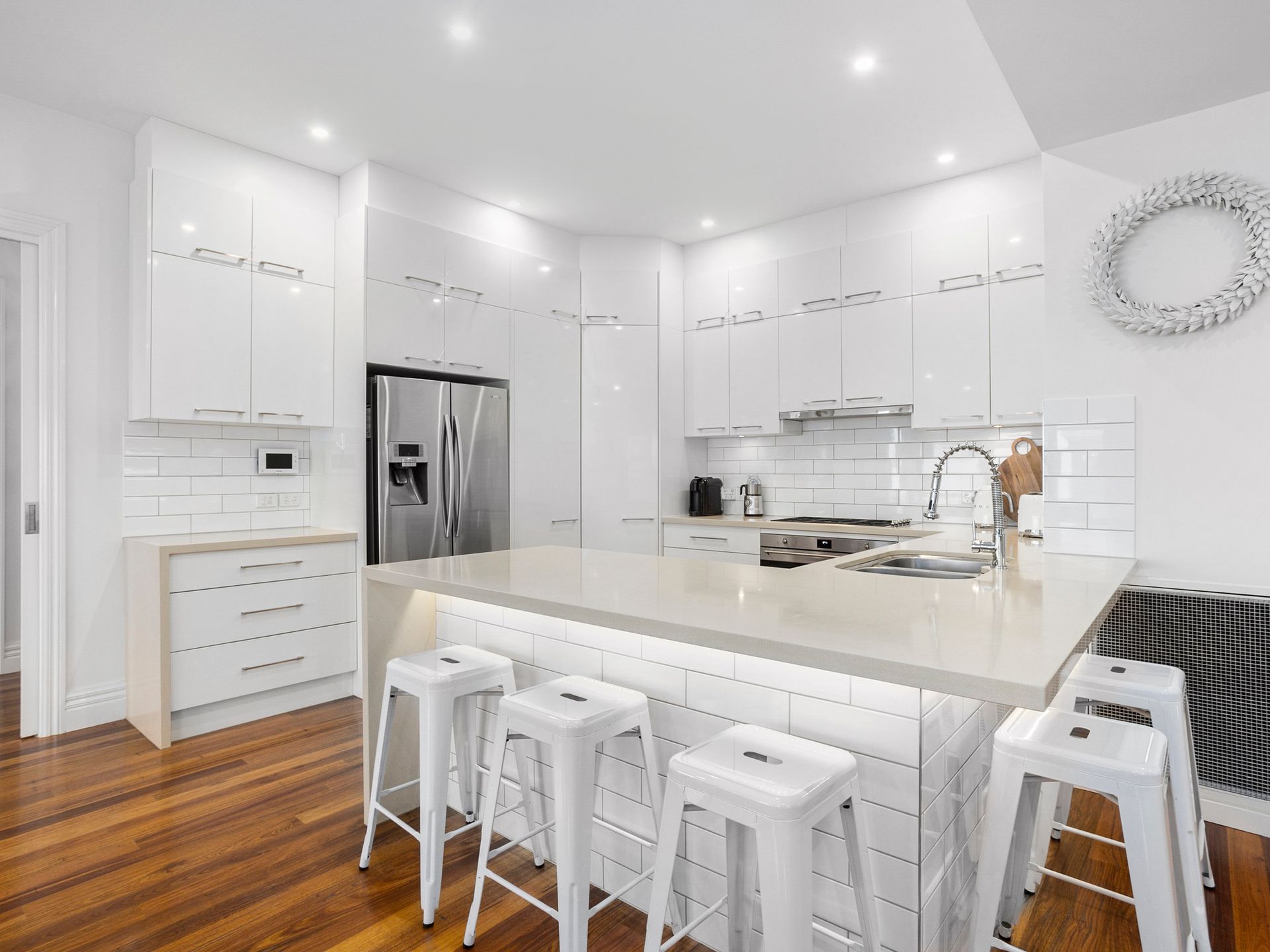 The generously sized breakfast bar seats up to 5, and is the perfect place to serve meals when you want a more casual style or kids meal. Alternatively the expandable dining table can seat 6 – 12 comfortably.