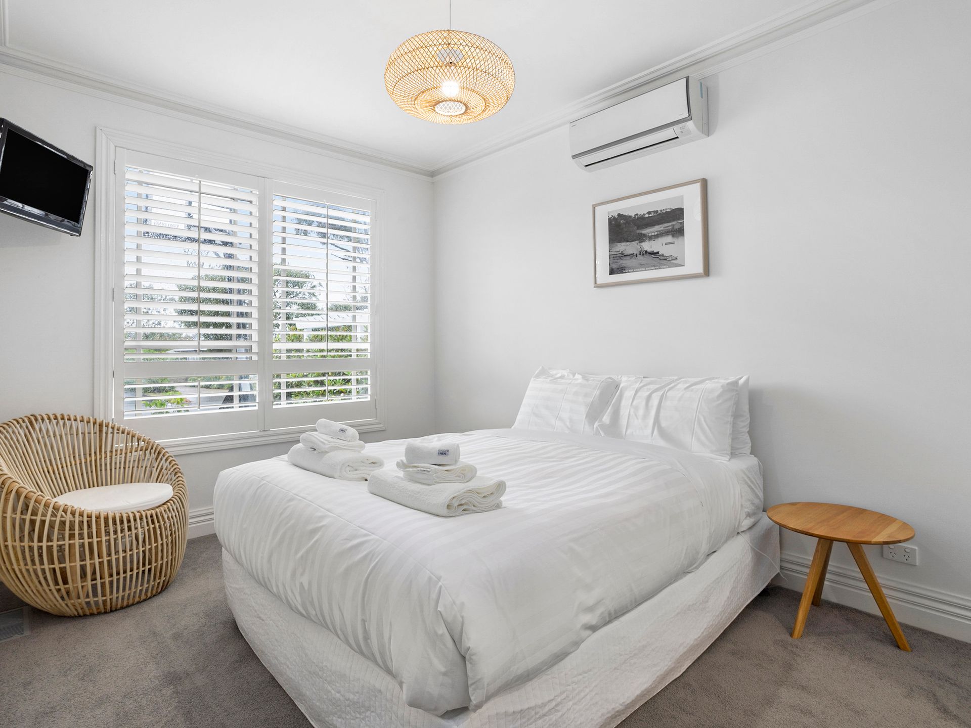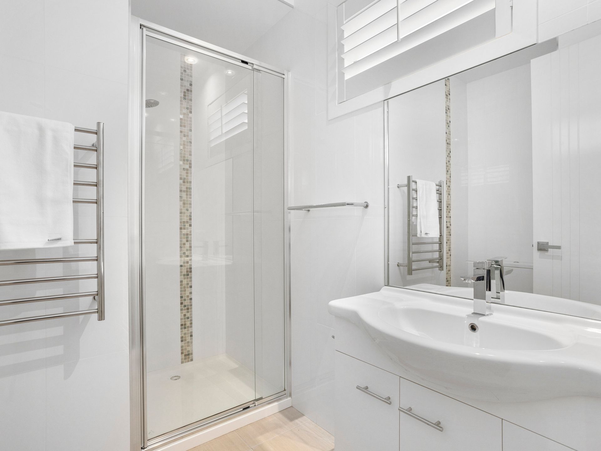 Also upstairs is the spacious master bedroom which has a king size bed, 42” wall mounted TV, split system air conditioning, ceiling fan and a large ensuite comprising of a separate WC, spa bath, large shower, double basins and a heated towel rack.