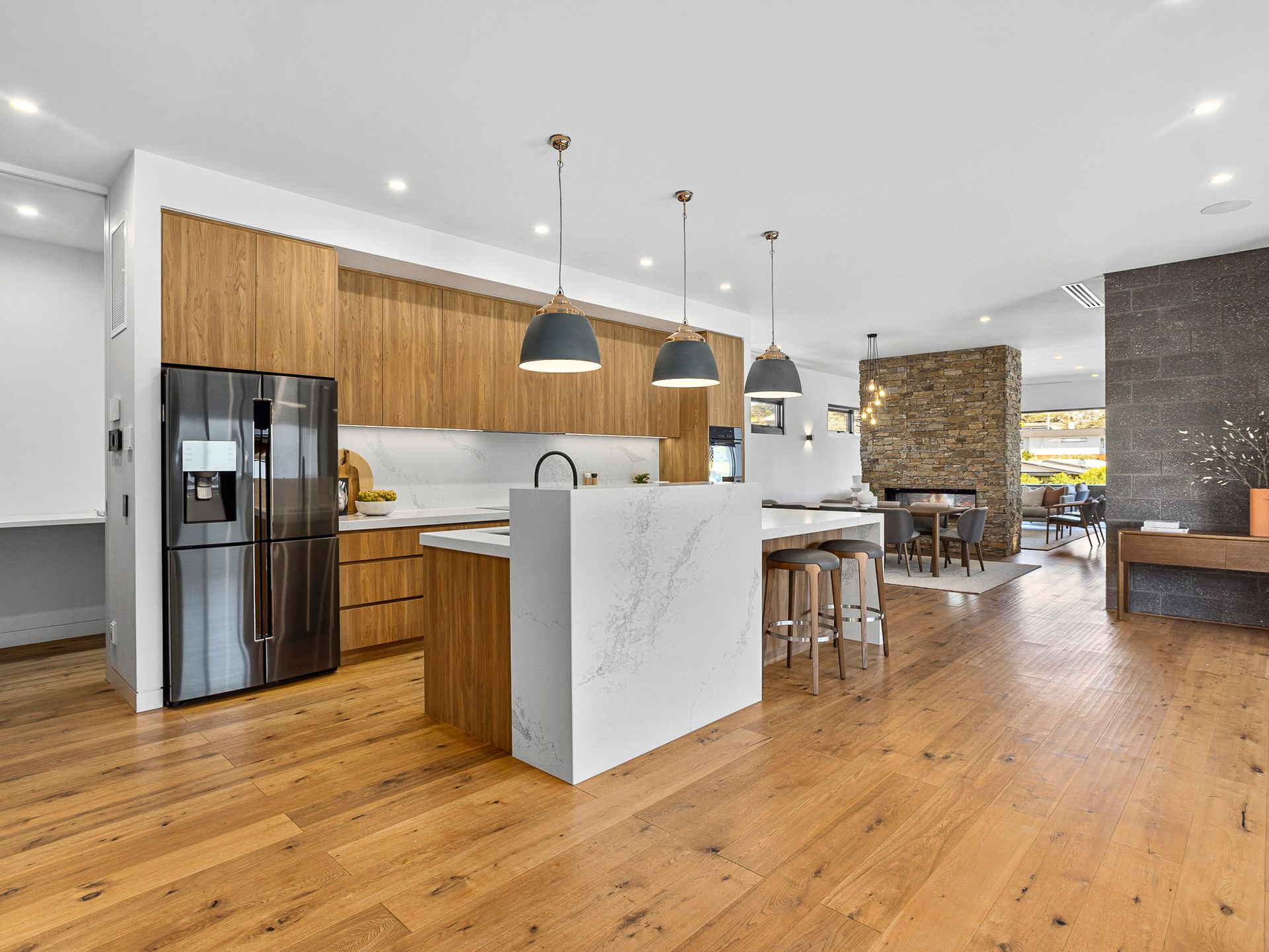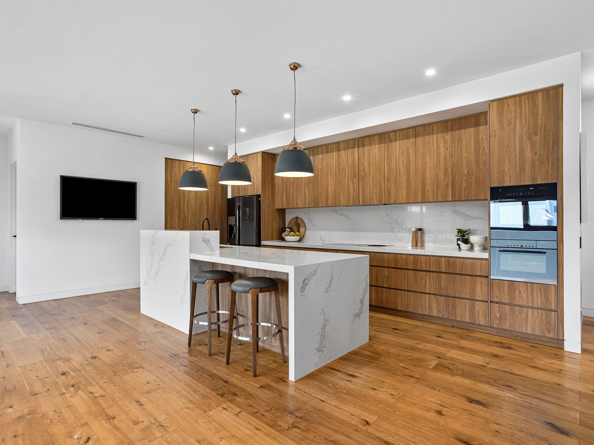 Kitchen has all VZUG appliances and includes an Island Bench with 2 stools, both a Steam and Conventional Oven, Induction Cooktop with separate Induction Wok Burner, Smart TV, Double Fridge with Water and Ice Dispenser and walk in Pantry with Wine Fridge.