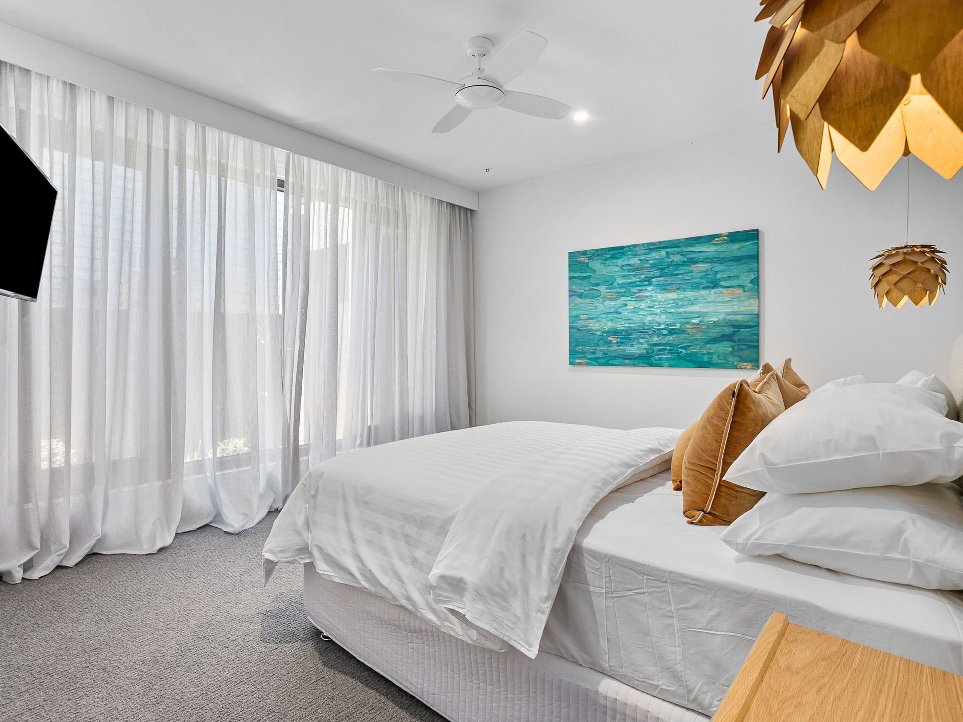 Bedroom 3 – Queen Bed + wall mounted Smart TV and Ceiling Fan