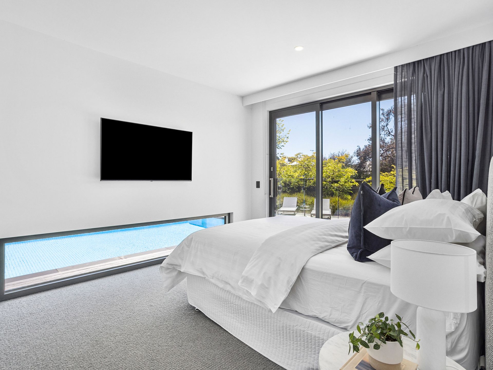 Master Bedroom 1 – King Bed – includes city views, block out curtains, wall mounted Smart TV, WIR and  Ensuite  with Terazzo Bath, Dual Double Shower and Toilet