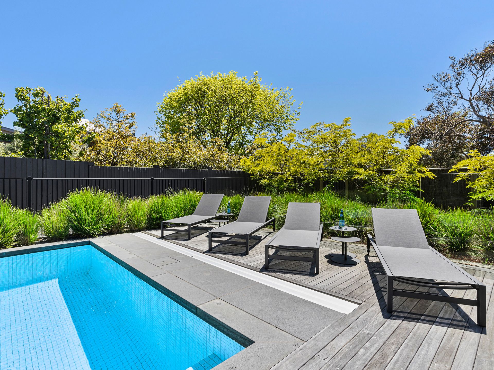 Large fenced heated Swimming Pool and gas heated Spa with Pool Lounges.