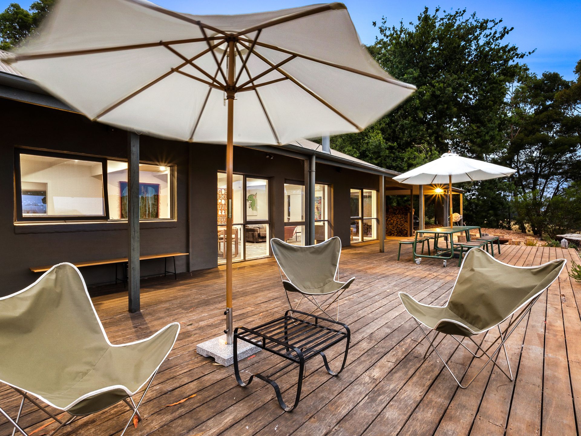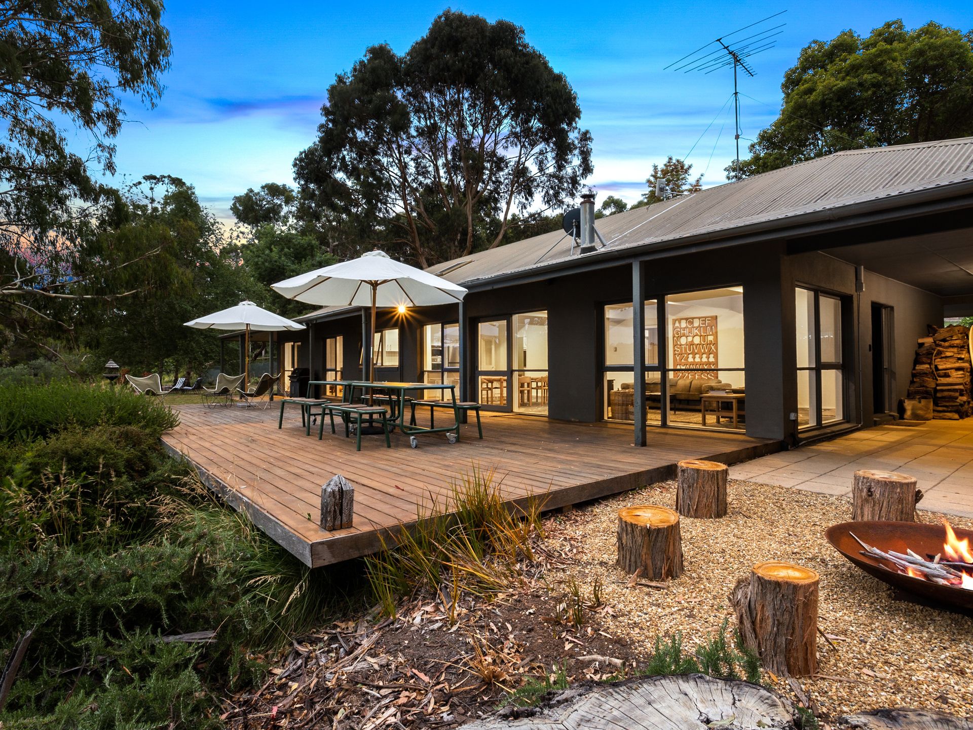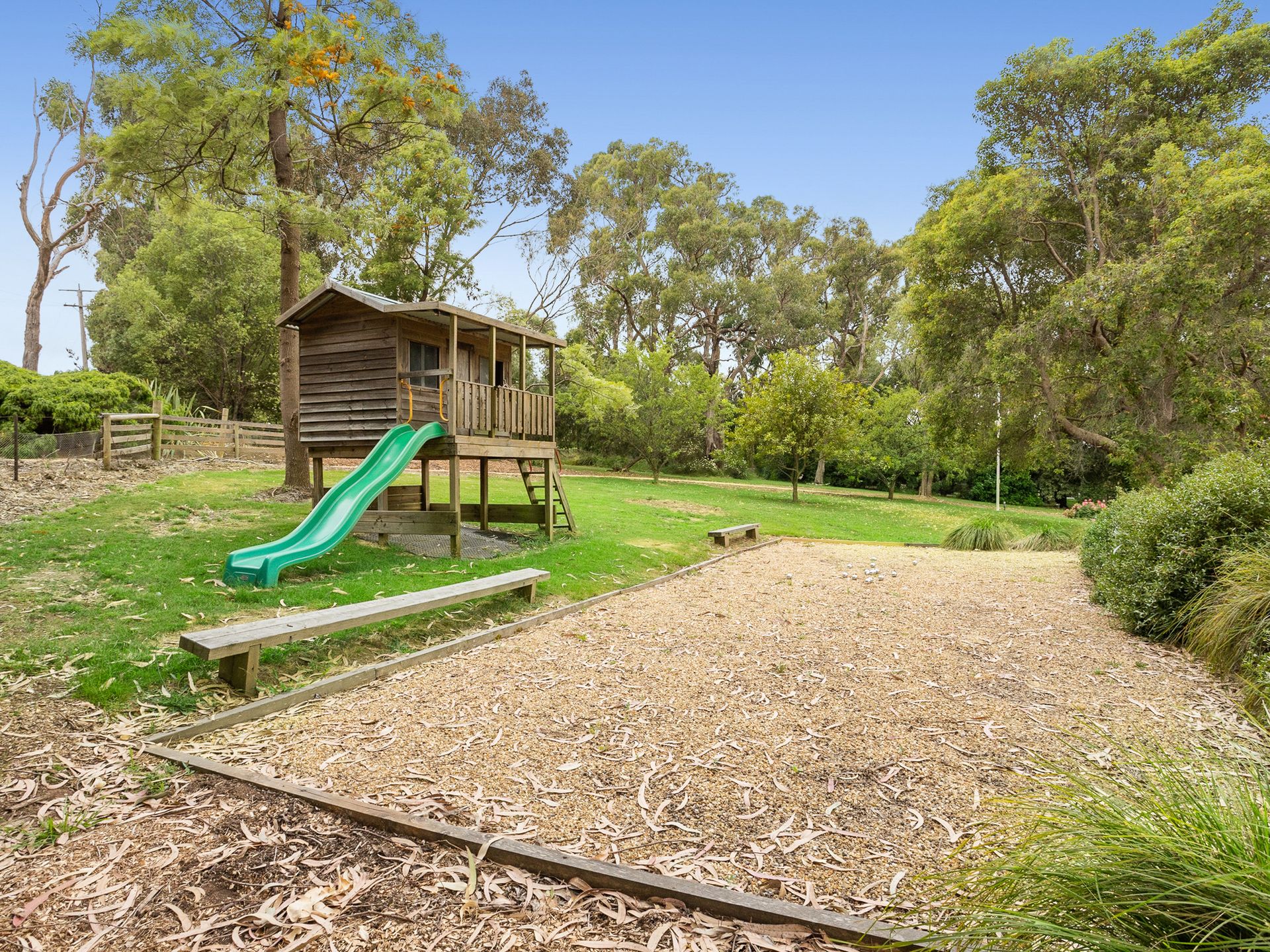 Outdoor entertaining includes, large deck with table and chairs , Bbq, outdoor couches + chairs and Cubby House.