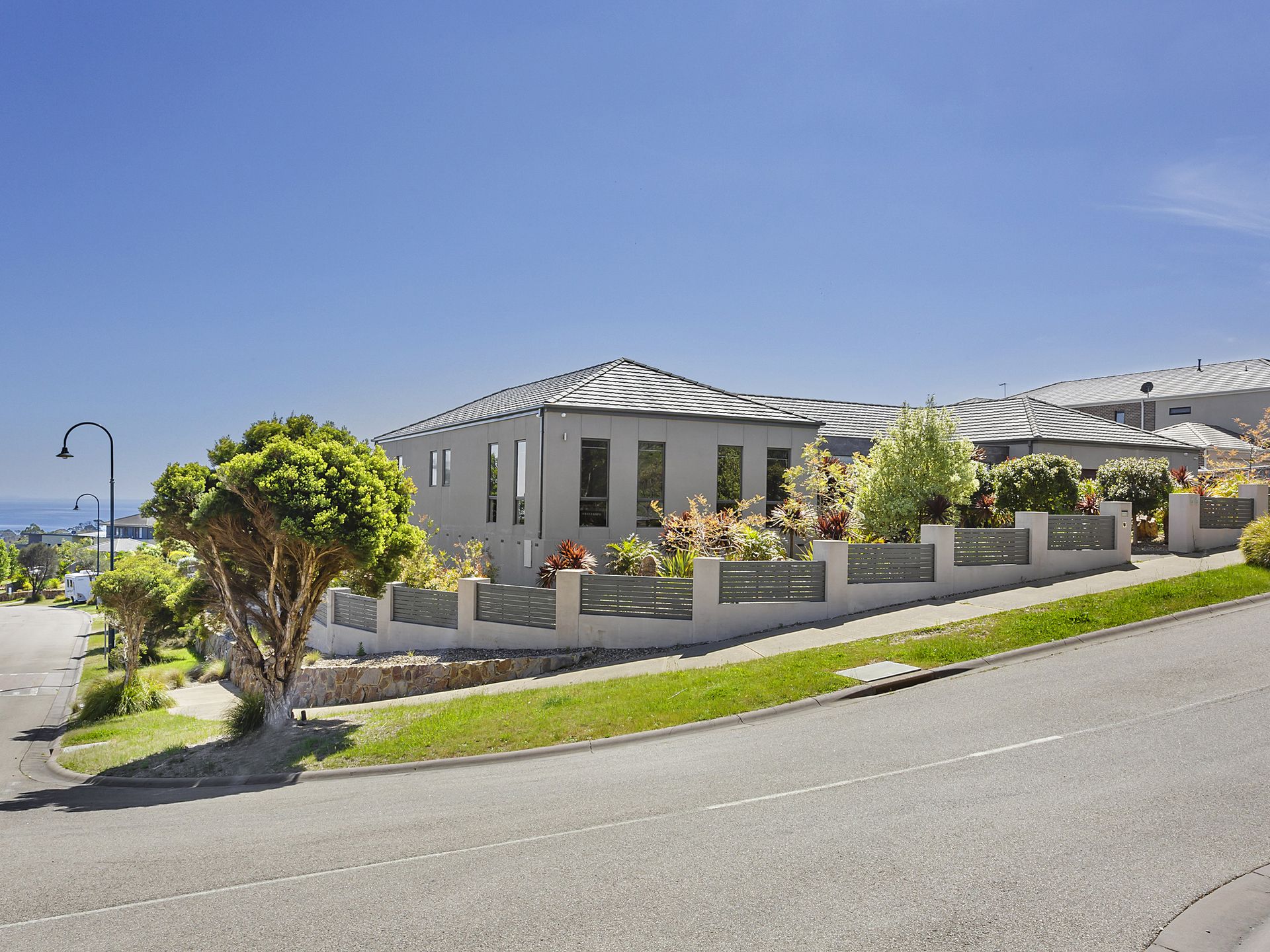 Enter house through front door or 2 car garage into open plan space with multiple living areas, kitchen, dining opening onto outdoor deck with stunning views of bays and city.