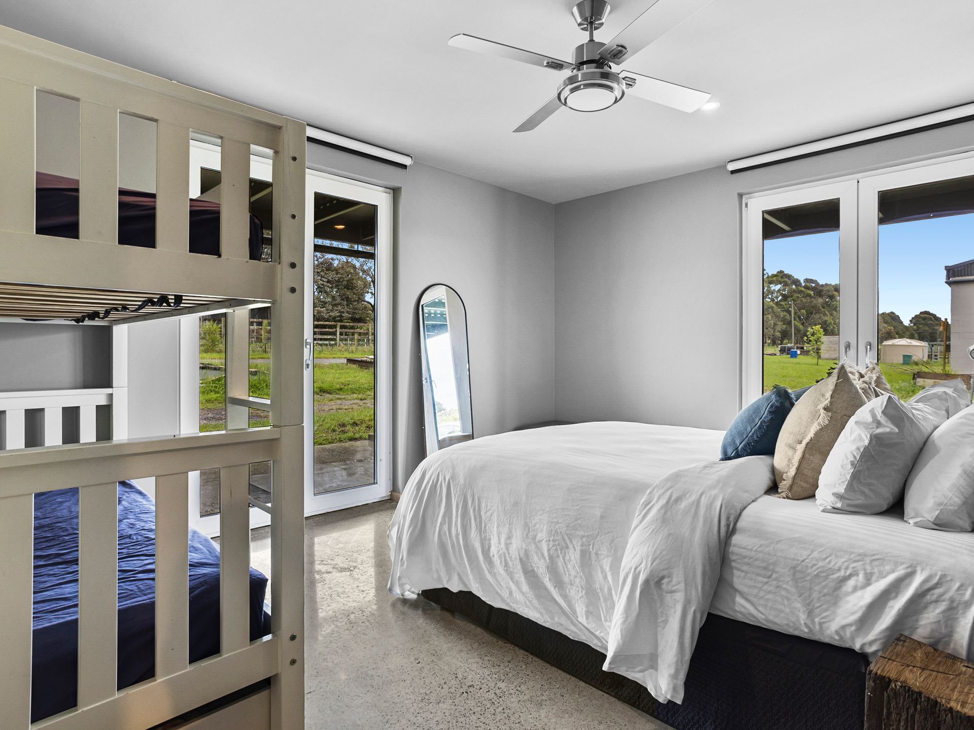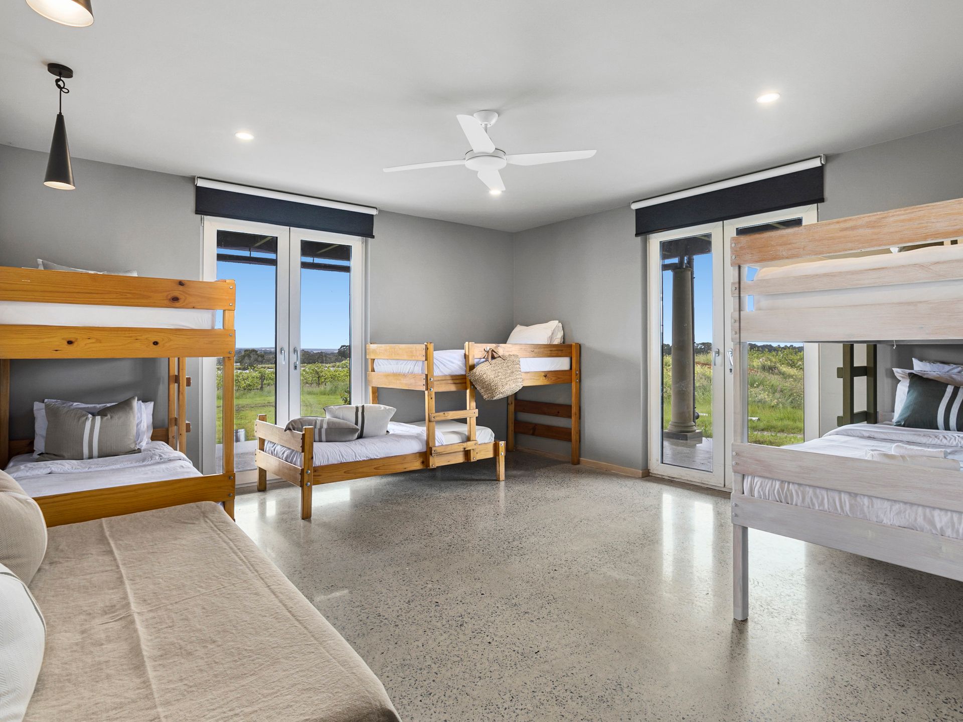Bedroom Configuration (all rooms have block out blinds, ceiling fans, electric blankets and heating) and can be flexible to meet your sleeping needs.