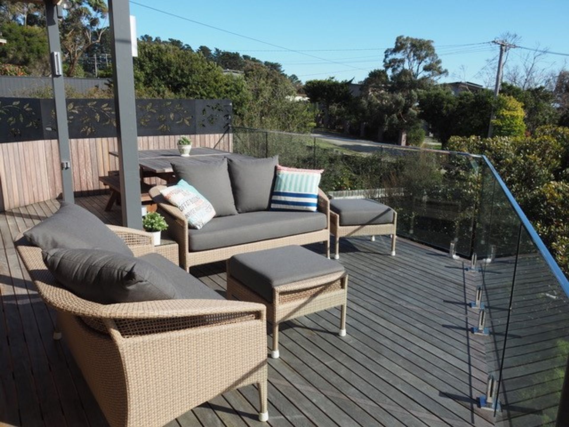 Summer - relax on the balcony or in air conditioned comfort upstairs in the Open plan area. Upstairs includes new modern kitchen with microwave and coffee machine, Dining that can seat between 6 - 10 people and Living with Sofa Bed, Tv and Dvd. There is a 4 burner BBQ on the balcony and outdoor table and chairs.