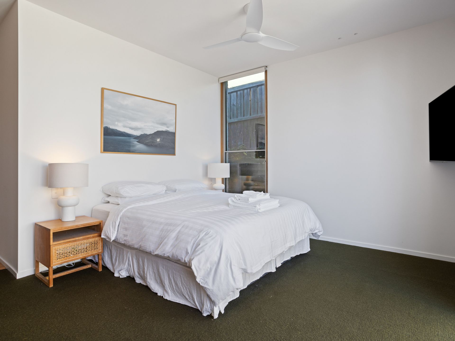 Two of the bedrooms enjoy private ensuites, while the remaining two bedrooms share access to a central bathroom. Each bedroom is styled with premium bedding, luxurious linen, and calming design elements to create a peaceful sanctuary for guests.
