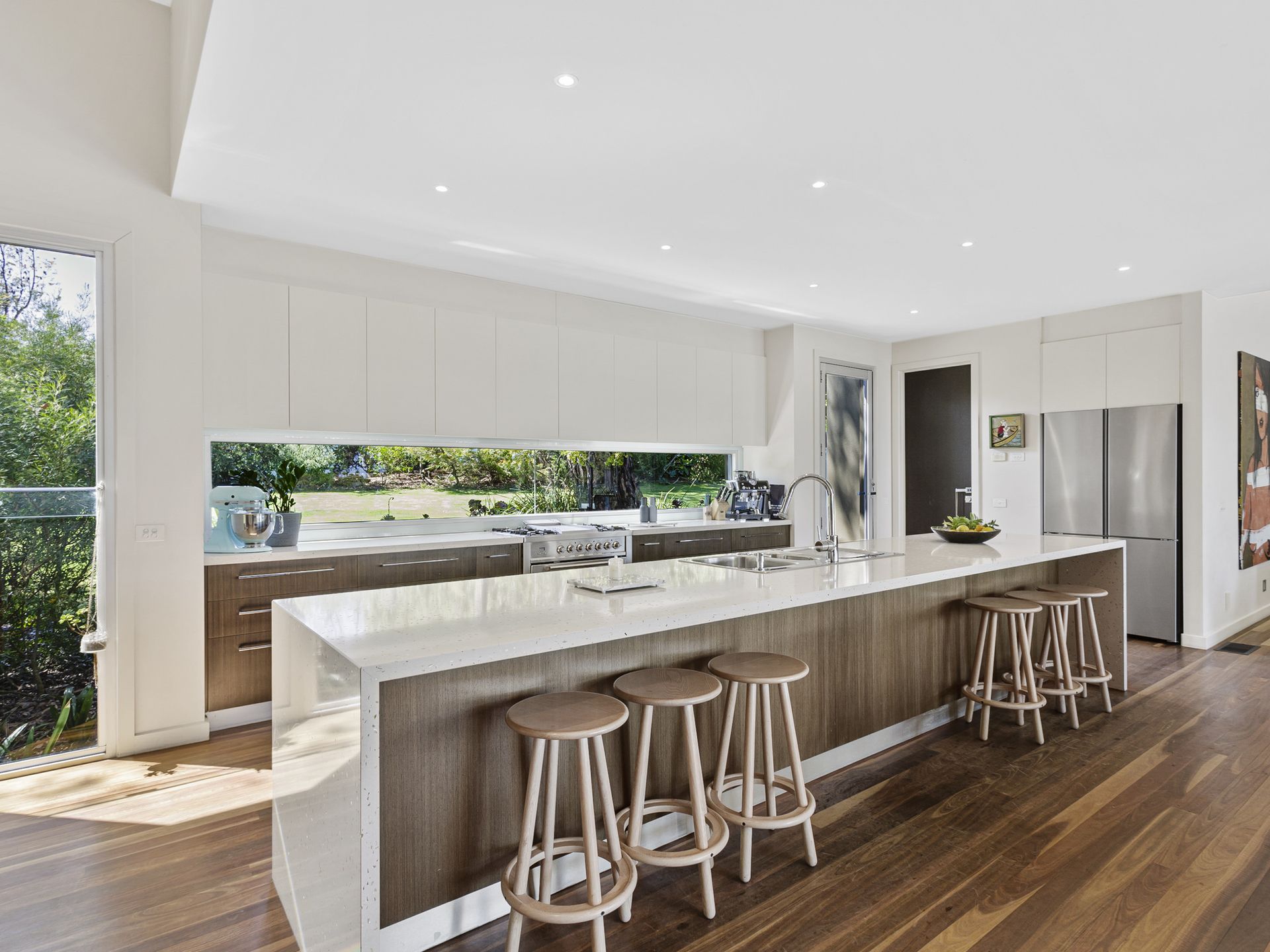 The 4.5mtr kitchen island bench is the perfect space to sit and sip on your home made coffee, or prepare meals whilst looking out across the infinity pool and tree tops to Port Philip Bay.