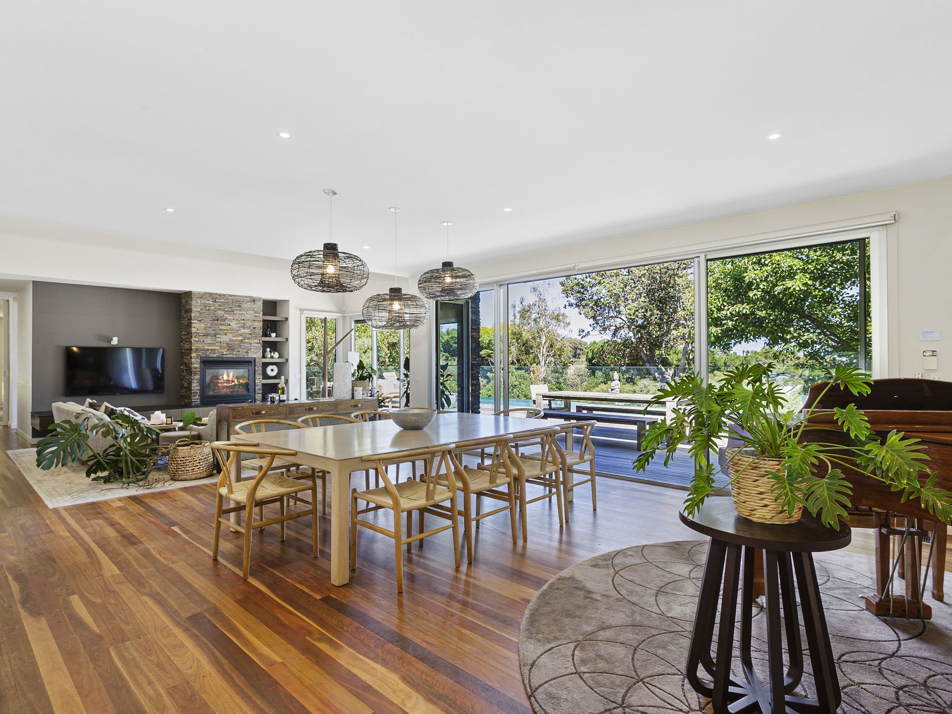 The dining area has a huge 10 seat dining table which sits adjacent to large sliding doors out to the fully decked alfresco dining area, complete with electric café style awning.